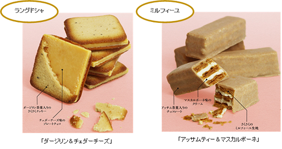 このたび発売する商品は、お茶とチーズを使用した「ラングドシャ」と「ミルフィーユ」です。様々な組み合わせを試作した中から「ダージリン&チェダーチーズ」、「アッサムティー&マスカルポーネ」、「九州産紅茶&チェダーチーズ」、「九州産ほうじ茶&クリームチーズ」の4種類の組み合わせを採用し、手に取っていただいた方に、美味しさと共に驚きや新しさを提供したいと考えています。