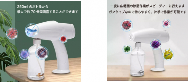 アルコールをナノミスト噴霧ハンディーミストバスター・ライト