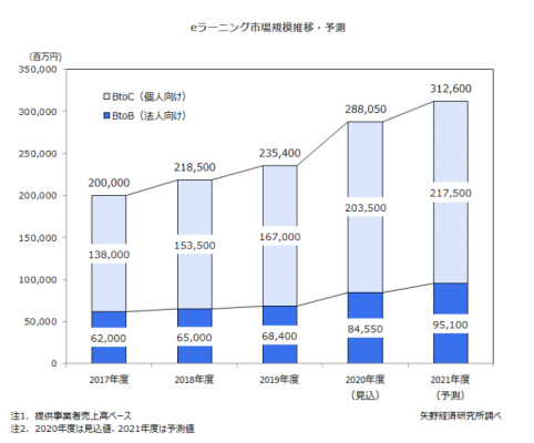 ただ、BtoB市場では価格下落の進行、BtoC市場では対面教育への需要の高さや無料学習サービスが数多く生まれていることなどの阻害要因(課題)があることから、前年度に比べて金額ベースの伸長は抑制されるものとみられる。