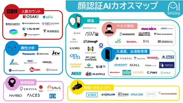 ※このカオスマップは顔認証を提供している企業のプレスリリースや製品サイト、導入実績などの公開情報を基にAIsmiley編集部が独自の主点で取りまとめたもので、網羅性や正確性を完全に担保するものではありません。