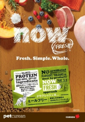 『NOW FRESHTM(ナウフレッシュ)』はPetcurean (ペットキュリアン) 社がトコトン素材にこだわり、世界で最も厳しい規制を設けているヨーロッパ諸国を含む30カ国以上で愛される犬用・猫用ドライフードです。