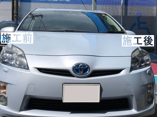 弊社が導き出した一つの答えがプロテクションフィルムの貼り付け作業です。白化や黄ばみが発生したヘッドライトでも、簡単な下地処理をおこない弊社プロテクションフィルムを貼り付けるだけで、次回の車検(2年~3年)まで、綺麗な状態を保つことができます。これにより、次回の車検まで夜間の光量を一定レベル以上保つことができます。
