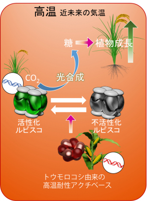熱安定性の高いアクチベースをイネに導入することによって、高温環境における光合成速度と植物成長の促進に成功