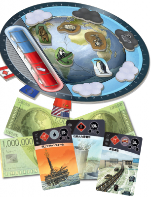『京都議定書』は、プレイヤーそれぞれが国家の代表となって、地球の環境問題と自国の利益を巡って交渉を行うボードゲームです。