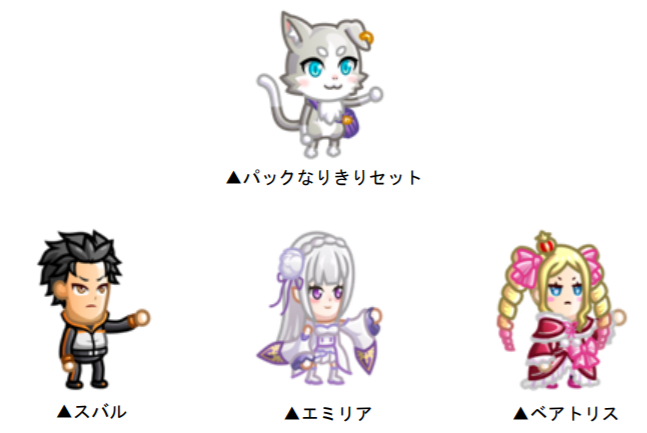 コラボ限定デザインの剣士お着替え“パックなりきりセット”が新たに登場!そして過去に登場した“スバル”“エミリア”“ベアトリス”も「アバたま」に復刻登場いたします。