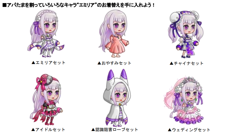 「アバたま」に限定キャラ“エミリア”や、キャラ“レム”専用激レアお着替えなどが初登場!