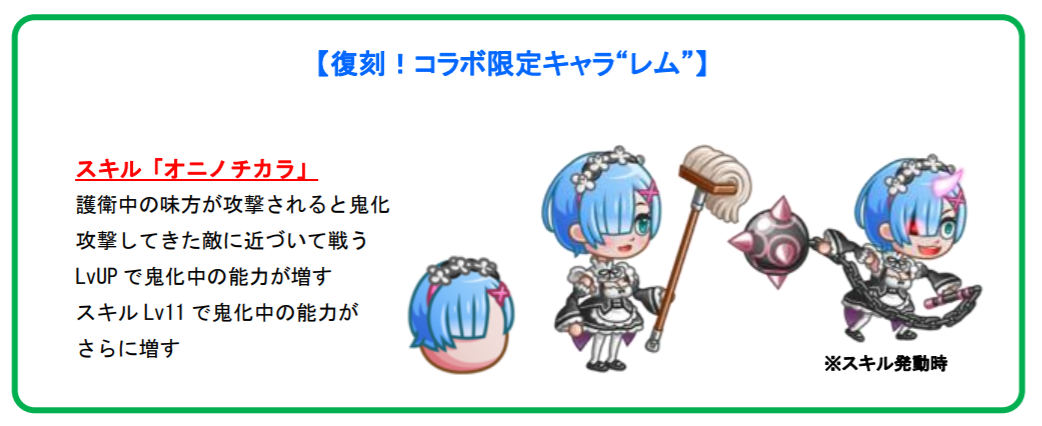 復刻開催する『Re:ゼロから始める異世界生活』とのコラボイベントでは、「コラボのアバたま」に限定キャラ“エミリア”や、過去に登場したコラボ限定キャラ“レム”の専用激レアお着替え“サイクロセット”、さらにはコラボ限定・剣士お着替え“パックなりきりセット”が新たに登場!もちろん、“レム”のタマゴも復刻いたします!
