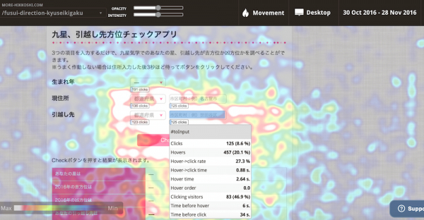 ・ページ内でのユーザーの利用動向を統計として、ヒートマップ化。