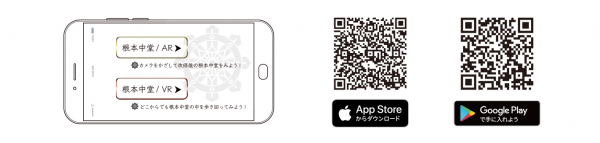 比叡山延暦寺根本中堂/ARアプリ(以下、当アプリ)を、スマートフォンまたはタブレットへインストールしてください。
