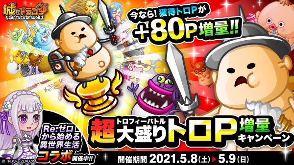 株式会社アソビズム(本社:東京都千代田区、代表取締役:大手智之)は、App Store・Google Playにて好評配信中の『城とドラゴン』で、「トロフィーバトル 超大盛りトロP増量キャンペーン」を2021年5月8日(土)より開催いたします。
