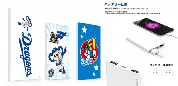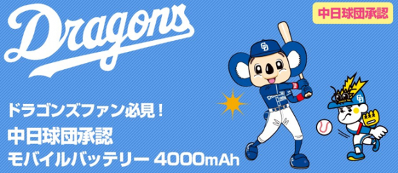 ●オリジナルデザインモバイルバッテリーで中日ドラゴンズを応援しよう!