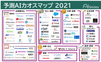 人工知能を搭載したサービスの資料請求ができるAIポータルメディア「AIsmiley」を運営するアイスマイリー(東京都渋谷区、代表取締役:板羽晃司)は需要や売上、健康や株価を予測するAIツールをまとめた「予測AIカオスマップ 2021」を2021年5月10日に公開します。掲載数は合計102サービス。