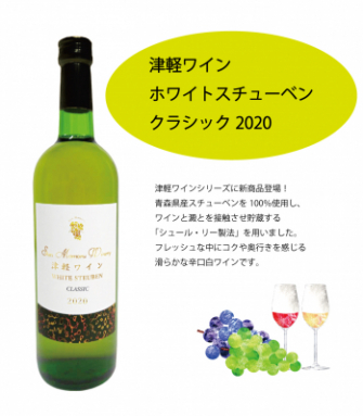 『津軽ワイン ホワイトスチューベン クラシック2020』は、黒葡萄である青森県産スチューベンを100%使用した、フレッシュな中にコクや奥行きを感じられる滑らかな中辛口白ワインです。
