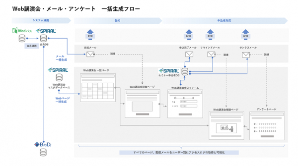 そこでパイプドビッツが長年培ってきたセミナー運営ノウハウと、メディクトが持つ医療分野のサイト制作の知見を活かし、両社は、Web講演会の集客から開催、アフターフォローまで一貫した管理を手間なく行える「製薬企業向けWeb講演会運用支援ツール」を共同開発しました。