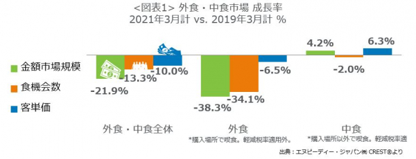 外食・中食市場情報サービス『CREST(R)*1』を提供するエヌピーディー・ジャパン株式会社(東京都港区、クリストス・クリストフォロー代表)は、外食・中食市場2021年3月の動向分析レポートを2021年5月13日に公表します。