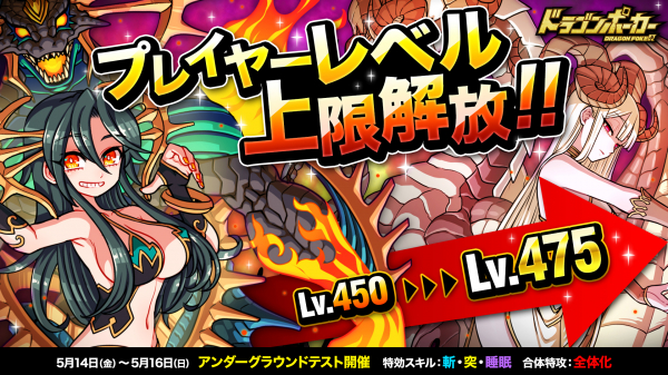 株式会社アソビズム(本社:東京都千代田区、代表取締役:大手智之)は、App Store・Google Playにて好評配信中のリアルタイム合体カードバトル『ドラゴンポーカー』で、2021年5月14日(金)メンテナンス後、プレイヤーレベルの上限解放を実施します。