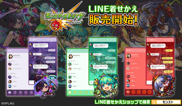 株式会社インクルーズ(東京都渋谷区、代表取締役社長 山﨑 健司)は、LINE株式会社(東京都新宿区、代表取締役社長 出澤 剛)が運営するコミュニケーションアプリ「LINE」内の着せかえショップにて、株式会社ミクシィ(東京都渋谷区、代表取締役社長 木村 弘毅)の展開するエンターテインメント事業ブランド「XFLAG(エックスフラッグ)」が提供するスマートフォンアプリ「モンスターストライク」(以下、モンスト)のLINE着せかえ3点を2021年5月20日(木)に一斉配信致しました。