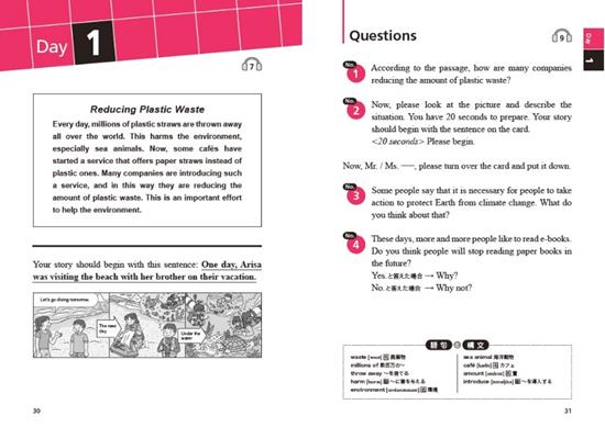 本書では、二次試験・面接の練習問題を7~14セット収録。英検一次試験の合格通知を受け取ってから二次試験当日まで、1日1セットを目安に対策することができます。