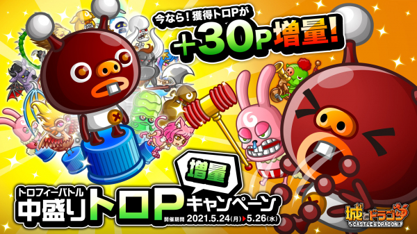 株式会社アソビズム(本社:東京都千代田区、代表取締役:大手智之)は、App Store・Google Playにて好評配信中の『城とドラゴン』で、「トロフィーバトル 中盛りトロP増量キャンペーン」を2021年5月24日(月)より開催いたします。