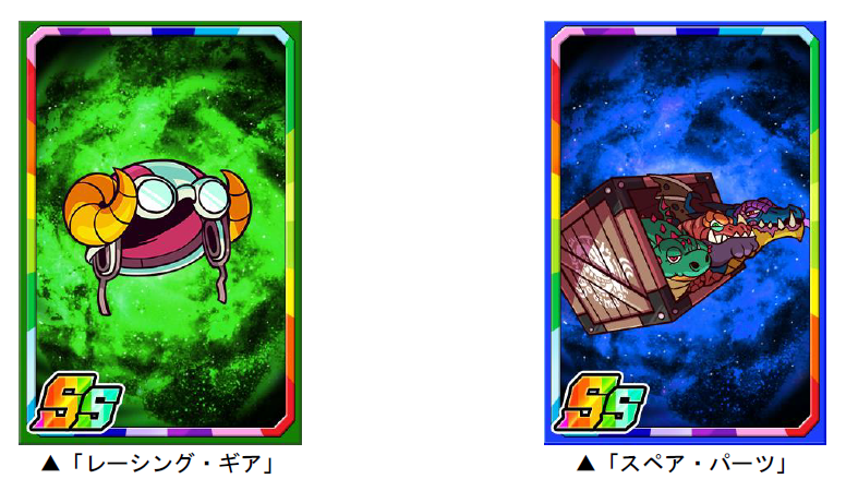 ダンジョンのボスモンスターを倒すと、まれに新たな限定子分カード「レーシング・ギア」「スペア・パーツ」が手に入ります。