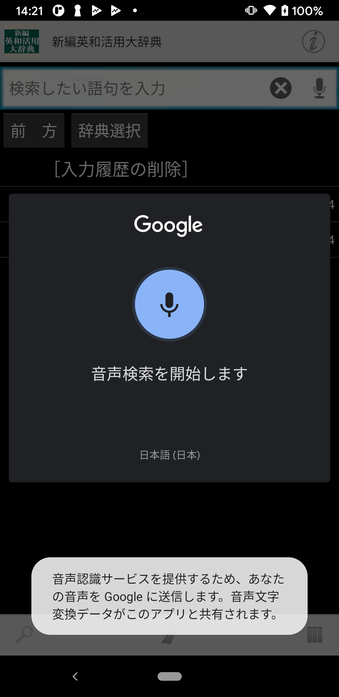 ・検索キーワードの入力は、もちろん音声入力にも対応。