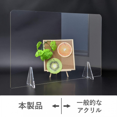 今回発売する「卓上パーテーションSP(アクリル)シリーズ」は、アクリル板表面に大日本印刷株式会社(以下:DNP)製の超低反射フィルム※2を使用することで、反射や見えづらさを大幅に低減。一般的なアクリルの反射率7%に対して、35倍の低さの0.2%以下※1を実現。存在感を極力抑えた高い透明性により、開放感のある空間を生み出します。メーカー希望小売価格は、開口の無い「窓なしタイプ」、開口のある「窓ありタイプ」ともに24,200円(税込)です。