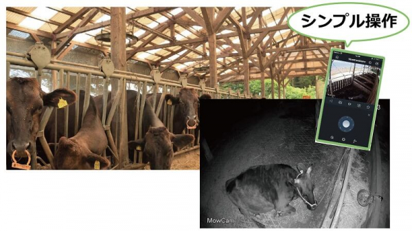 牛舎の様子を見守る用途で開発された「MOWCAM(モウカム)」。実は建設現場でのこんな課題をクリアする条件が整っていました。