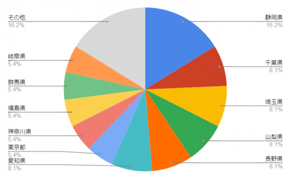 ペット連れの方が最も訪れた県は静岡県でした。