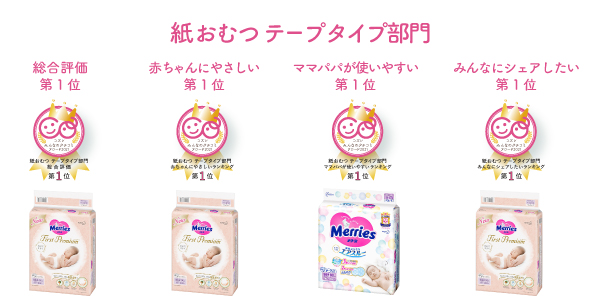 2. 「赤ちゃんにやさしい」ランキングは、実施したアンケート内の「肌触りがよい」、「信頼できる」等の項目得点が高かった製品に授与