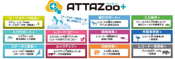 JBATの「ATTAZoo+」は、kintoneでよく使用する追加機能や“あったら便利”な機能をまとめて実装したプラグインセットです。kintoneのアプリは、簡単なマウス操作で入力項目を設定するだけで手軽に作成することができますが、業務内容に合わせて独自の機能を追加するにはJavascriptによるプログラミングが必要です。