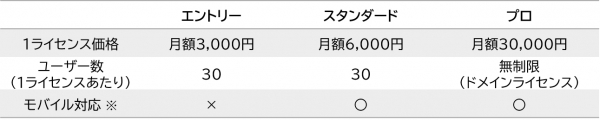 利用用途に応じて選べる3つの料金プラン(エントリー、スタンダード、プロ)を用意しています。