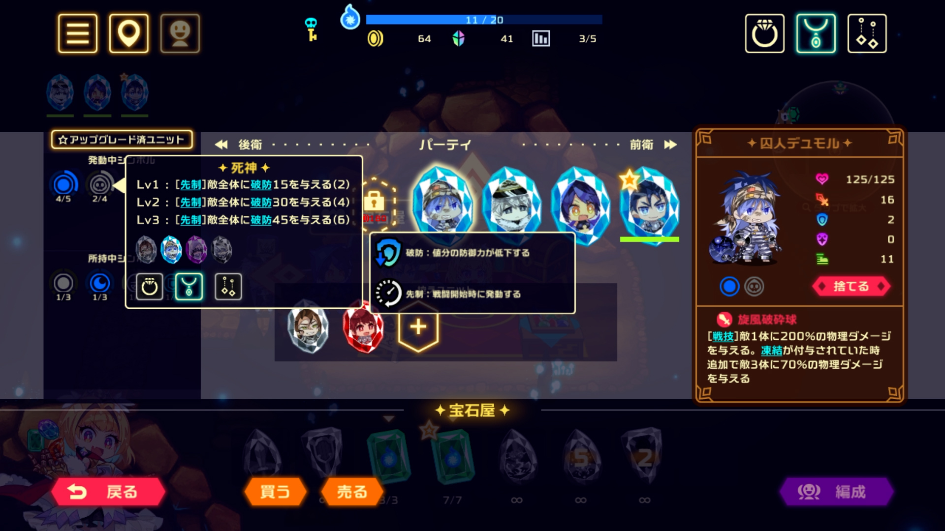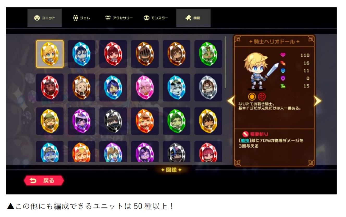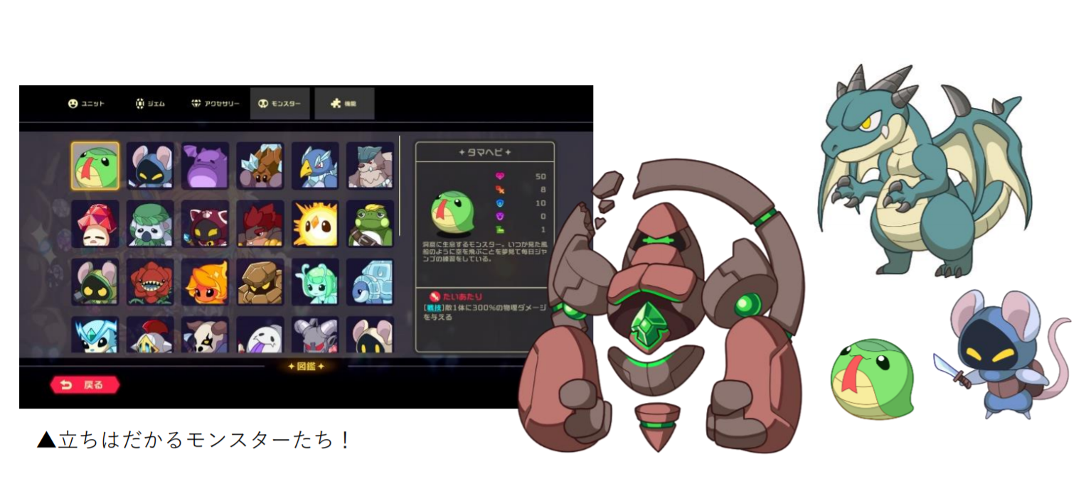 宝石にされてしまった個性豊かな仲間たち(ユニット)や、ダンジョンに登場するモンスターを紹介!