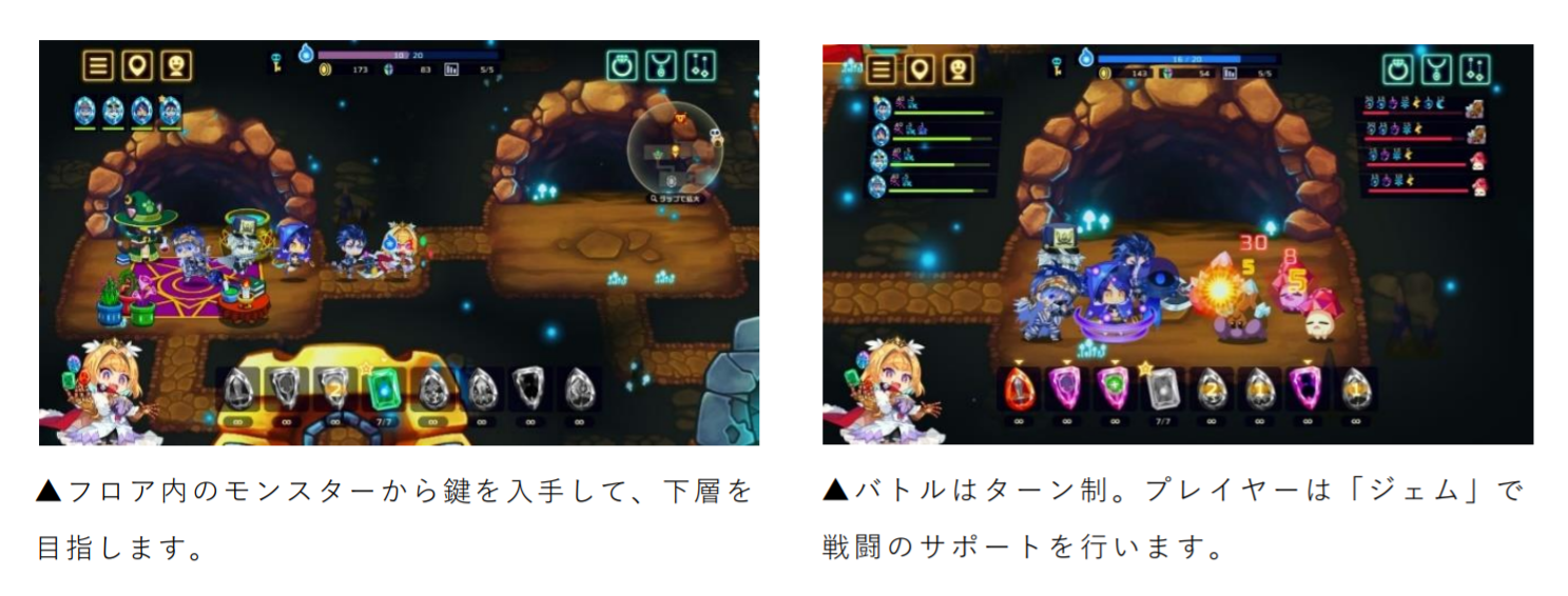 輝石姫アメリと仲間たちが立ち向かう、「宝石術」を駆使したダンジョンバトルをご覧ください。
