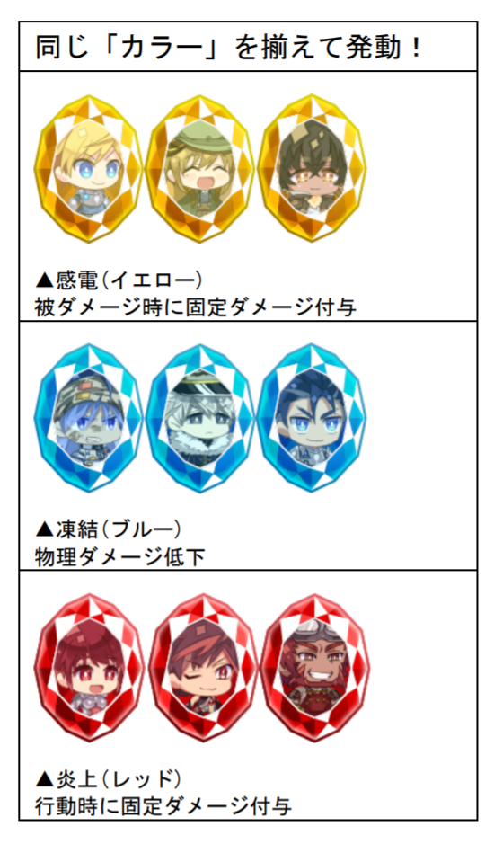 道中で宝石にされてしまった騎士たちを仲間にしながら、それぞれの能力を組み合わせて戦う「パーティビルド」がゲームの醍醐味! 入手したユニット(宝石)は最大6体までパーティに編成可能。それぞれのユニットが持つ「カラー」や「マーク」が、ほかのユニットと一致することで「シンボルアビリティ」が発動します。同じ種類のシンボルをたくさん揃えるほど、効果がより強力に!