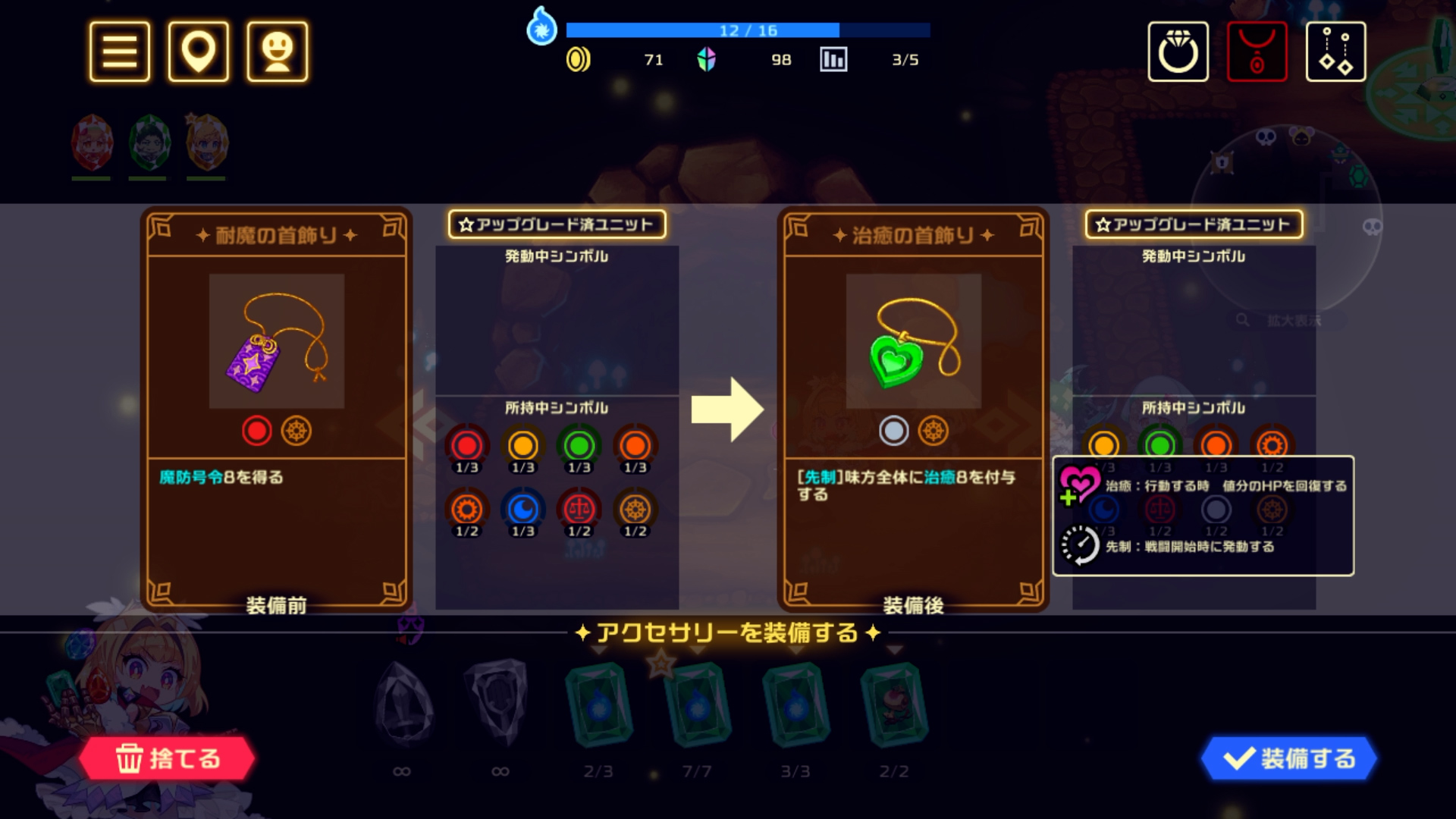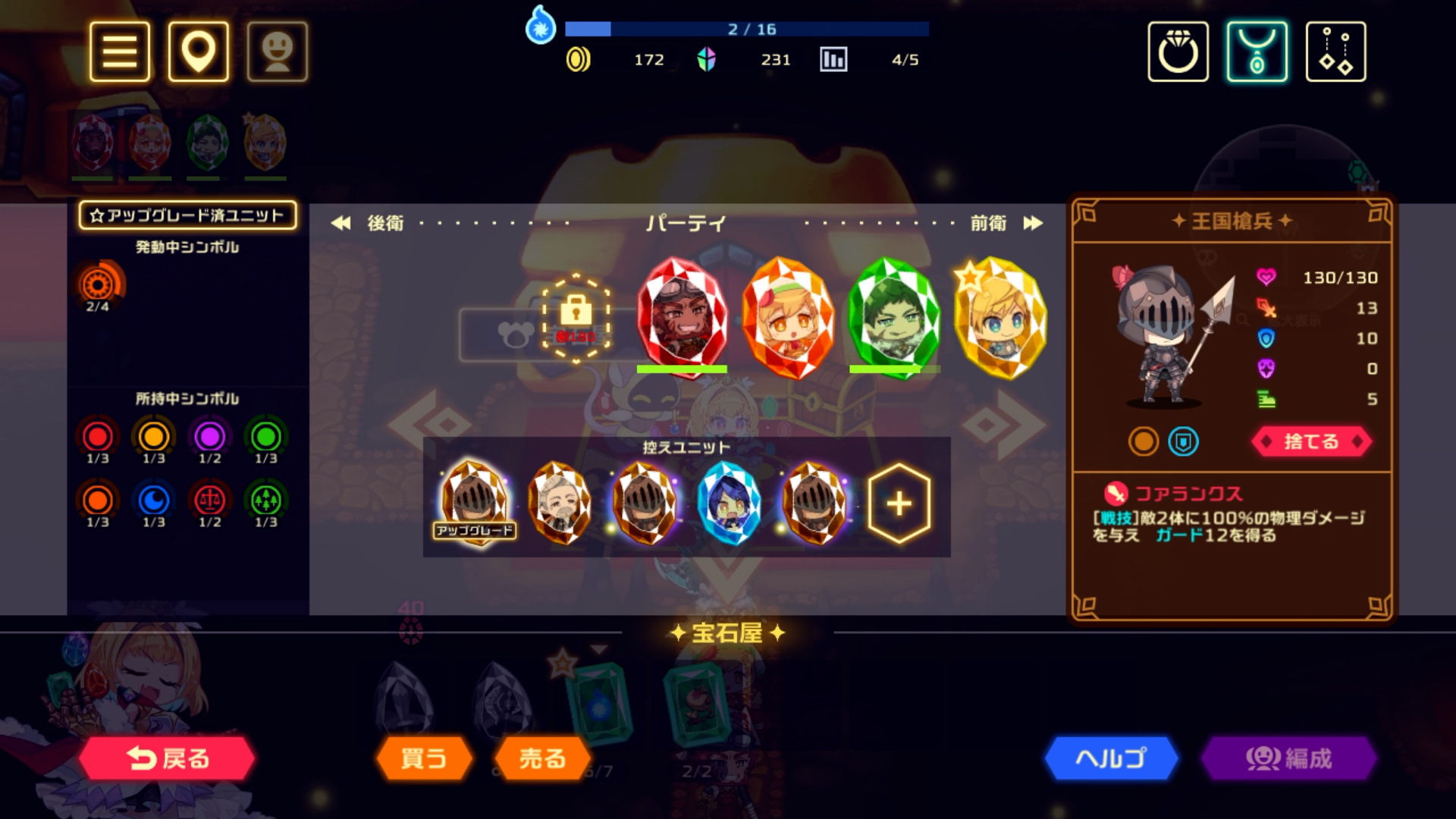 同じユニットを特定数集めると、ユニットのアップグレードが可能。アップグレードするとユニットのステータスがアップするだけでなく、パーティ編成から外しても「シンボルアビリティ」の発動対象に! パーティ編成の幅がさらに広がる!