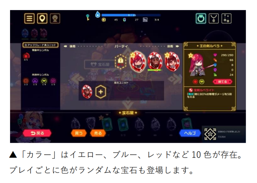 人気スマートフォンゲーム『城とドラゴン』『ドラゴンポーカー』の開発、運営を行うアソビズムが制作した初のSteam向けタイトル。黒の魔女の手によって宝石に変えられてしまった騎士たちを仲間にしながら、それぞれの能力を組み合わせて戦う「パーティビルド」が鍵を握るパーティ構築型ローグライクゲームです。