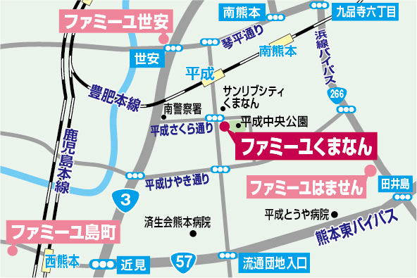 JR豊肥本線の平成駅から近く、大型商業施設サンリブシティくまなん正面に佇む、くまなんホール。自家用車・公共交通機関いずれのご利用でも分かりやすく、アクセスしやすい立地です。ことに駅やバス停からの近さは、免許返納で自由に使える足の減った高齢家族の参列に影響します。送る側も高齢者の多い今、誰ひとり交通の便であきらめることなく最後のお別れができます。