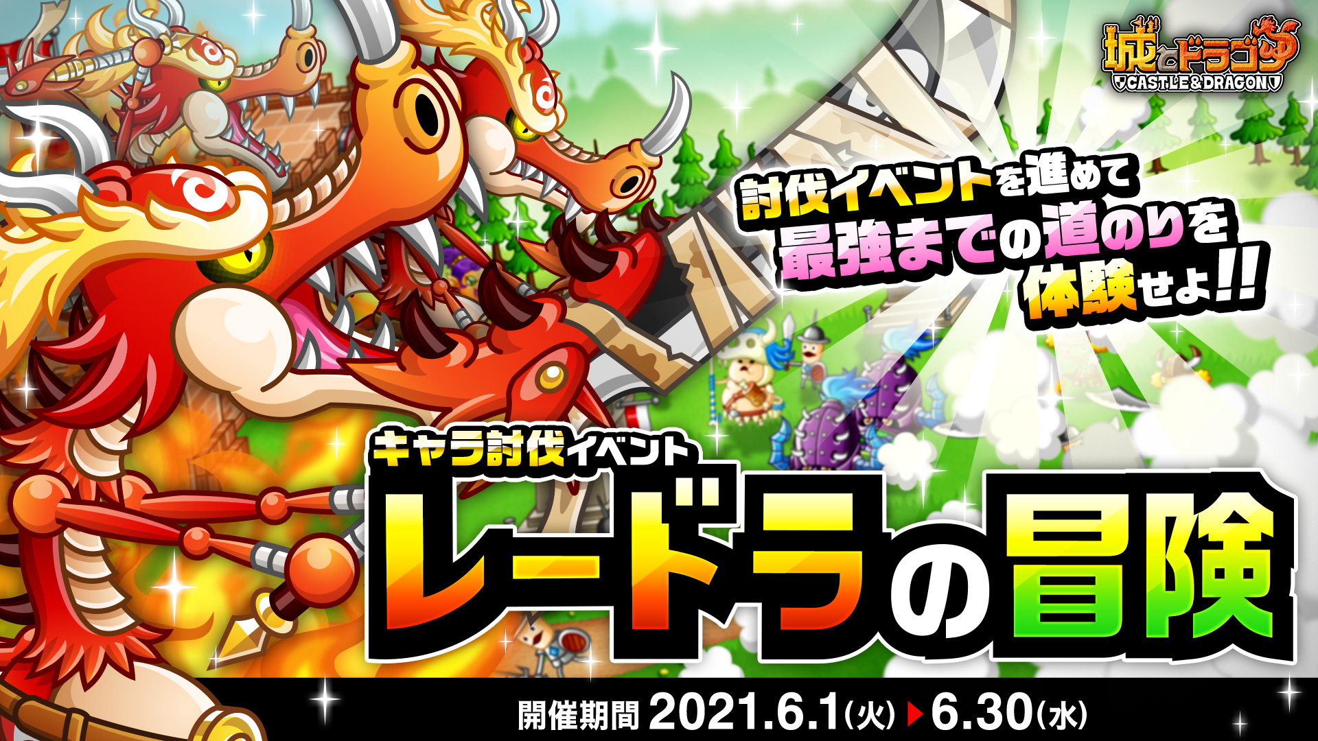 株式会社アソビズム(本社:東京都千代田区、代表取締役:大手智之)は、App Store・Google Playにて配信中の『城とドラゴン』で、「竜剣士レードラ登場ログインボーナス」を2021年5月31日(月)より開催します。