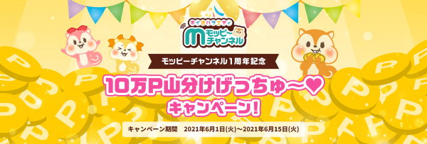\モッピーチャンネル1周年記念/10万P山分けげっちゅ~キャンペーン!