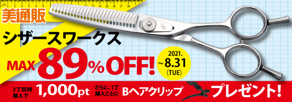 「美通販」のシザースワークスキャンペーンでは、「シザーを必要とする理美容業界のすべての方々が、もっとシザーを購入しやすくなるよう応援していきたい」という考えに基づき、高品質のシザーを厳選し、最大89%OFFの美通販会員特別価格でご提供いたします。キャンペーンは2021年8月31日(火)まで開催いたしますので、この機会に美容学生・アシスタントの方々から理美容師様まで、たくさんの方々にご利用いただきたいと考えております。