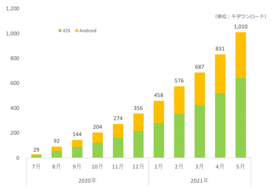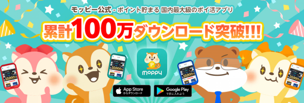 2020年7月に「モッピー」スマートフォン版アプリをリリース以降、「ポイ活」トレンドブームから一般ユーザーへの認知の高まりを受けダウンロード数は順調に推移し、2021年5月末に『100万ダウンロード』を突破いたしました。