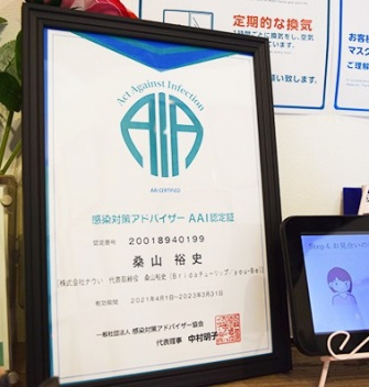 合格者は感染対策アドバイザーとして認定され、AAI認定証が発行されます。
