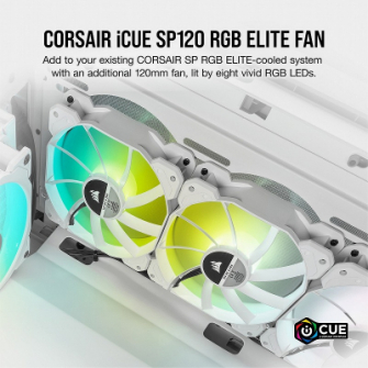 iCUE SP120 RGB ELITE Whiteは、アドレッサブルRGBを搭載した120mmサイズのRGB LEDファンのホワイトモデルです。ファン軸周囲に8個の高輝度LEDを搭載、ホワイトフレームと半透明ブレードが鮮やかなイルミネーションを演出します。ファンの回転数制御はもちろん、システムモニタリングと連動した同調ライティングを可能にするインテリジェントコントロールシステム iCUE対応、回転抵抗を低減させたハイドロリックベアリングにより優れた静音性を実現します。ファン1個の「SP120 RGB ELITE White」、ファン3個とLighting Node COREを同梱した「SP120 RGB ELITE White Triple Fan Kit」、用途で選べる2つのモデルをラインアップ。