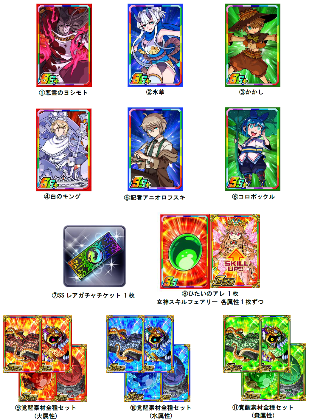 ・女神スキルフェアリー 各属性1枚ずつ