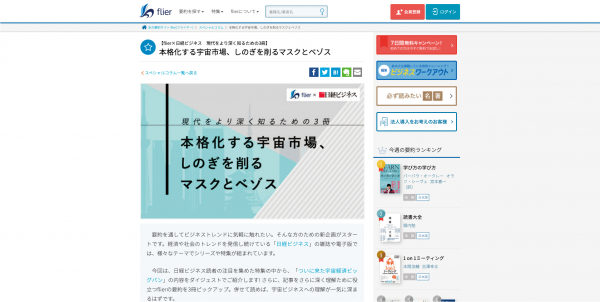 書籍の要約文をアプリで配信する、ITベンチャーの株式会社フライヤー(本社:東京都千代田区、代表取締役CEO 大賀康史)は、株式会社日経BPが運営するビジネス情報サイト「日経ビジネス電子版」でのコンテンツ配信を6月7日(月)に開始しました。