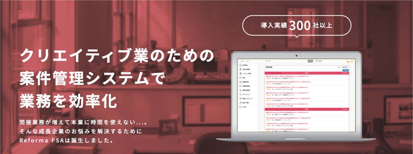 クリエイティブ業に特化したクラウドERPであるReformaは累計300社以上に導入され、業務管理や案件管理に貢献してきました。今後もユーザー様の声を元に継続して機能改善を行い、より多くの企業様における生産性向上に寄与してまいります。