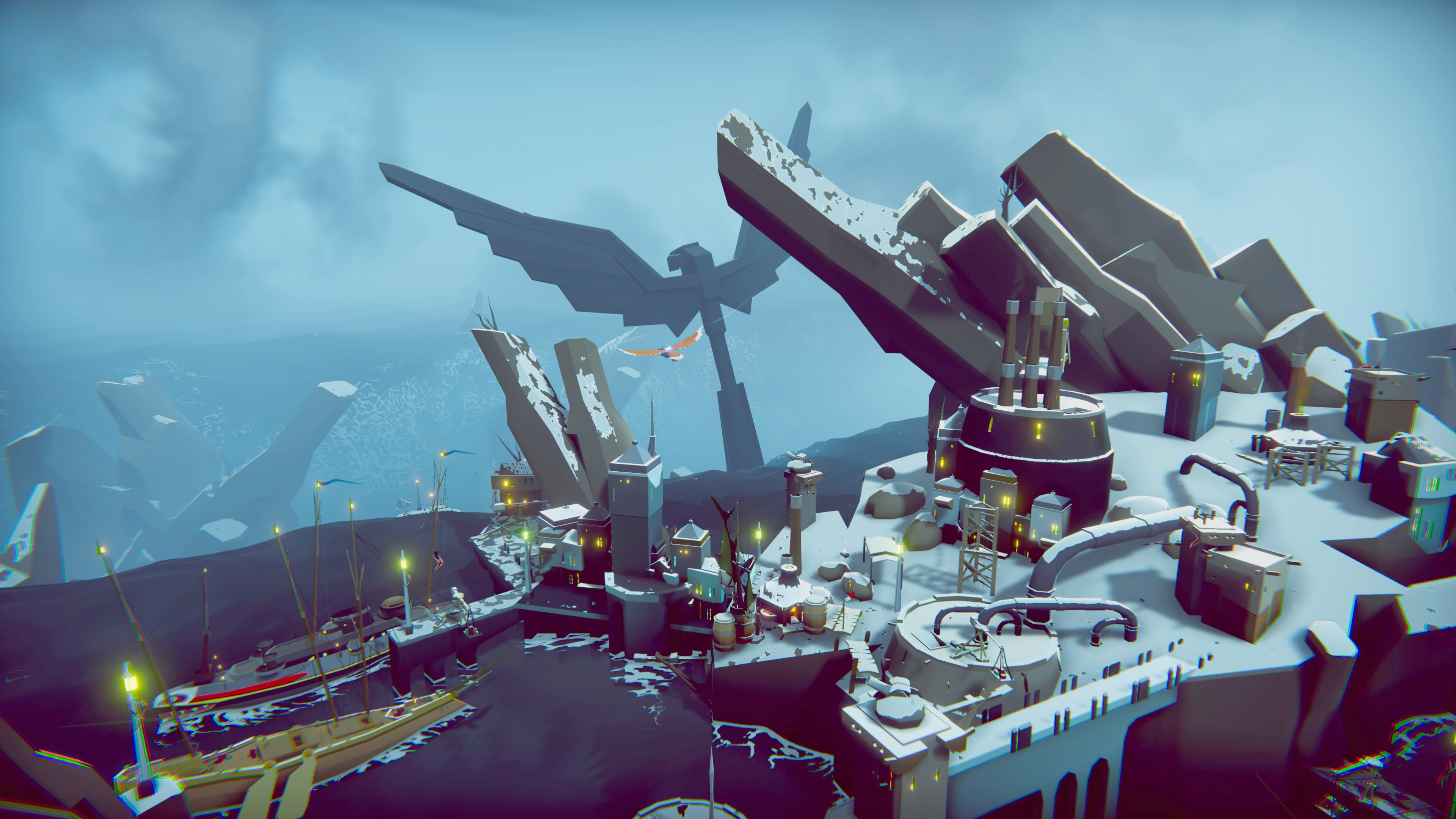 コピーライト:The Falconeer (C) 2021 Tomas Sala. Published by Wired Productions Ltd and developed by Tomas Sala. The Falconeer and The Falconeer logo are trademarks of Tomas Sala. All rights reserved. Published and distributed by 3goo K.K. in Japan.