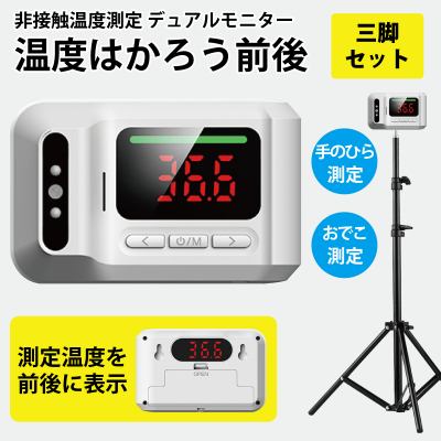 ミスターカード株式会社(本社:埼玉県川口市)は、デュアルモニター式の非接触温度計「温度はかろう前後三脚セット」を2021年6月8日(火)から発売いたします。前後2画面ディスプレイを採用することでお客様とスタッフどちらも検温結果を確認できるので業務効率も改善。スタッフと接しながら銃口をお客様に向けるガンタイプよりも、ストレスフリーなセルフ検温式でより良いサービスを提供可能。約1秒でスピード測定、USB給電や乾電池対応、音声やアラームでお知らせ、15か国語対応、メモリー機能など特長を持つ非接触温度計です。オフィス、倉庫、店舗、飲食店、介護施設、医療機関など三脚を設置できる場所で職場の安心とお客様の安全につながる感染予防対策をご提案いたします。
