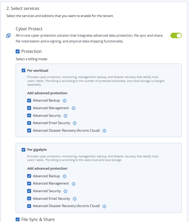 また、Advanced Backup、Advanced Security、Advanced Disaster Recovery、Advanced Managementなどのアドバンスドプロテクションパックを追加することで、MSPはサービスを柔軟に拡張およびカスタマイズし、顧客やワークロードごとに最適なレベルのサイバープロテクションを提供することができます。