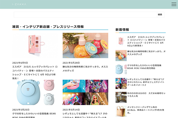 『i-zakka』は、インテリア、キッチン用品、美容・コスメ、北欧雑貨など様々な日常生活情報を提供しているWebメディアです。